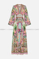 The dress features a flattering A-line silhouette that flows effortlessly to an ankle-length, creating a refined and elongated look. Its natural waistline enhances the figure, and the vibrant print adds a charming, vintage-inspired flair. Designed for all seasons, this dress is perfect for any occasion, from casual outings to more formal events.
